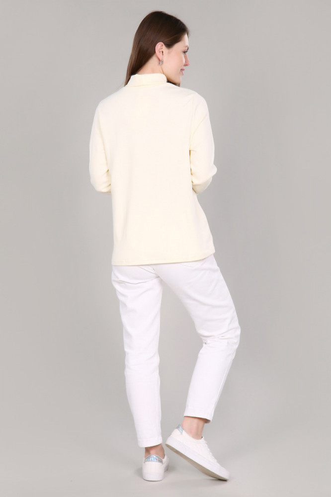 Водолазка отличного качества (экрю, на самом деле бледно жёлтый, приятный), но описание не соответствует реальности. Силуэт приталенный, узкие рукава носить было бы не комфортно, хотя размер мой, 50р. Хотела то, что заявлено в описании и на фото. Подарила подруге.