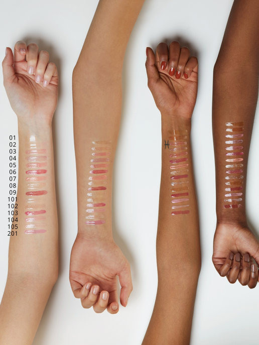 оттенки ярко выраженные! по этому если вы возьмёте бледно розовый, то ваши губы будут почти белые! шиммер в нем не видно совершенно и блеск очень густой, не особо блестит на губах я аллергетик, но он аллергии не вызвал. но после нанесения минут 10-15 очень жгёт губы, потом это ощущение проходит