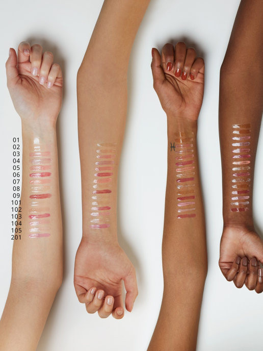 оттенки ярко выраженные! по этому если вы возьмёте бледно розовый, то ваши губы будут почти белые! шиммер в нем не видно совершенно и блеск очень густой, не особо блестит на губах я аллергетик, но он аллергии не вызвал. но после нанесения минут 10-15 очень жгёт губы, потом это ощущение проходит