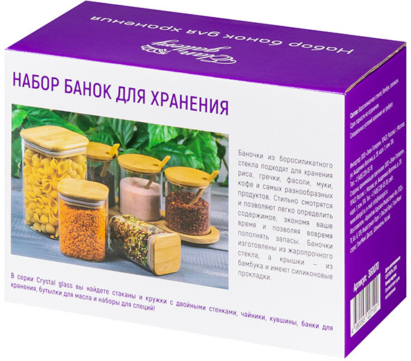 💳 Оплатить за товар можно при получении 🇰🇿 Есть бесплатная доставка по Казахстану от 1 дня 🎁 Копите бонусы с каждой покупки Серия: Crystal glass Набор состоит из 2-х банок Crystal glass объемом 450 мл каждая. Банки выполнены из боросиликатного стекла и имеют крышки из натурального бамбука. Подходят для хранения чая, кофе, специй и самых разнообразных продуктов. Стеклянные банки позволяют легко определить содержимое, экономя ваше время и позволяя вовремя пополнять запасы. Стильно выглядят и подходят для организации хранения даже на открытых полках. Крышки плотно закрываются благодаря силиконовым прокладкам. Размер каждого изделия 8×8×11 см. Хранить вертикально. Крышки нельзя замачивать. Банки без крышек можно использовать в микроволновой печи и посудомоечной машине. Поставляются в стильной картонной упаковке. Банки Crystal glass смогут стать удобным дополнением на кухне или приятным подарком для ваших родных и близких! |