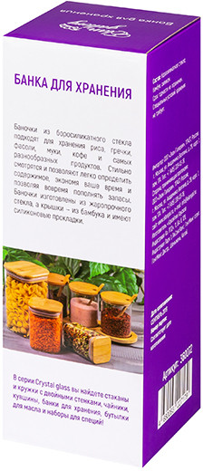 Elan Gallery Банка для хранения «Crystal glass»В данный момент этот товар отсутствует в продаже. Возможно, у нас найдется аналогичный или похожий товар здесь. Серия: Crystal glass Банка для хранения Crystal glass объемом 2 литра выполнена из боросиликатного стекла и имеет крышку из натурального бамбука. Подходит для хранения риса, гречки, фасоли, муки, кофе и самых разнообразных продуктов. Стеклянная банка позволяет легко определить содержимое, экономя ваше время и позволяя вовремя пополнять запасы. Стильно выглядит и подходит для организации хранения даже на открытых полках. Крышка плотно закрывается благодаря силиконовой прокладке. Хранить вертикально. Крышку нельзя замачивать. Банку без крышки можно использовать в микроволновой печи и посудомоечной машине. Поставляется в стильной картонной упаковке. Банка Crystal glass сможет стать удобным дополнением на кухне или приятным подарком для ваших родных и близких! |