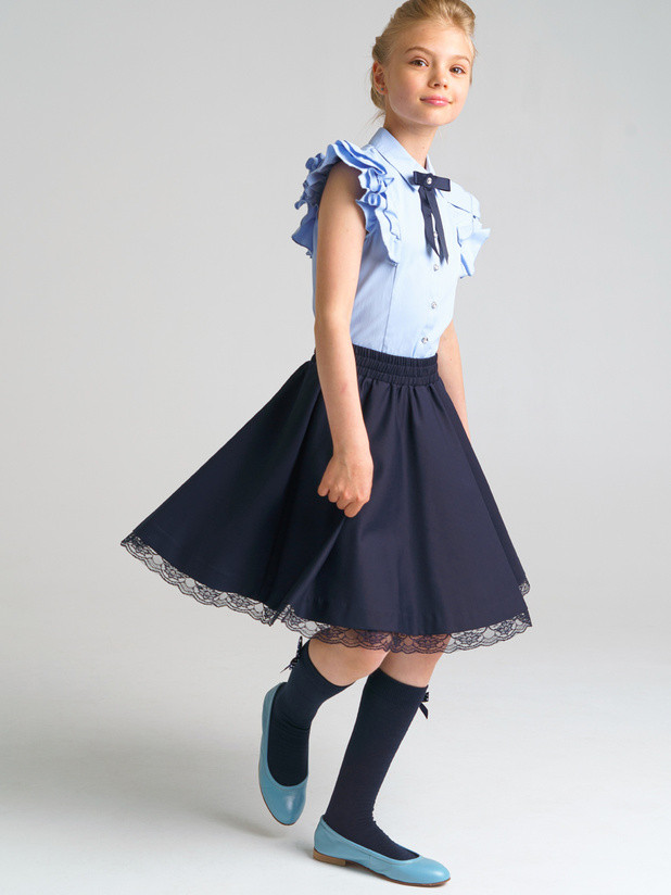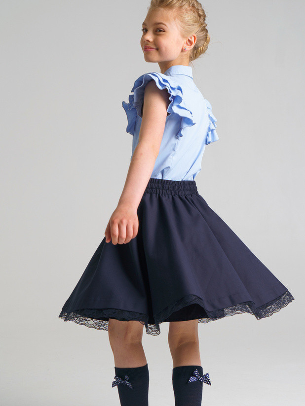Юбка из костюмной ткани. Резинка по талии, по краю кружево. Ваш ребенок будет чувствовать себя комфортно благодаря оригинальному крою, не стесняющему движения. Юбка смотрится нарядно.