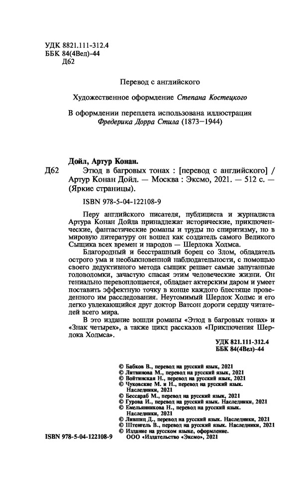 Этюд в багровых тонахВ данный момент этот товар отсутствует в продаже. Возможно, у нас найдется аналогичный или похожий товар здесь. Серия: Яркие страницы Перу английского писателя, публициста и журналиста Артура Конан Дойла принадлежат исторические, приключенческие, фантастические романы и труды по спиритизму, но в мировую литературу он вошел как создатель самого Великого Сыщика всех времен и народов — Шерлока Холмса. |