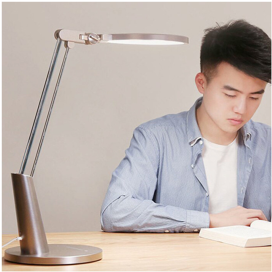 Умная настольная лампа для защиты глаз Yeelight имеет высоту 500 мм, уникальную форму, достаточной для личного рабочего места, и обеспечивающей лучшую эстетику. Гибкая конструкция позволяет регулировать различные углы освещения, а сенсорная панель (как и APP приложение) обеспечивает удобную регулировку яркости (максимальное значение — 850 лм), просто сдвигая палец влево или вправо.