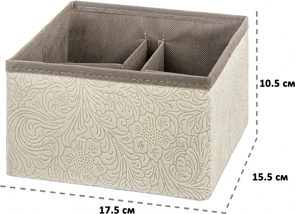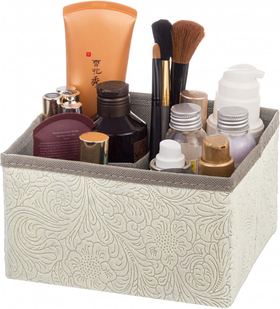 El Casa Органайзер для косметики и мелочейВ данный момент этот товар отсутствует в продаже. Возможно, у нас найдется аналогичный или похожий товар здесь. Серия: Цветочный узор на бежевом Органайзер подойдет для хранения косметики, канцелярии и других мелочей. Органайзер выполнен из высококачественного материала и имеет плотные картонные вставки. Внутри имеет 4 перегородки, которые можно разместить на свое усмотрение. На 2-х перегородках имеется по 3 держателя для туши, кисточек, ручек или карандашей. Внутри органайзера можно сделать от 1-го до 5-ти отделений и до 8-ми карманов по бокам. Органайзер можно сложить. В таком виде он занимает совсем мало места. Складной органайзер сможет стать удобным и эстетичным дополнением вашего дома! |