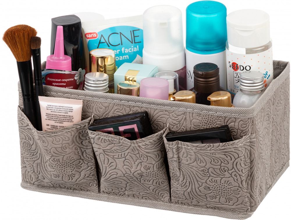 El Casa Органайзер для косметики и мелочейВ данный момент этот товар отсутствует в продаже. Возможно, у нас найдется аналогичный или похожий товар здесь. Серия: Цветочный узор на кофе с молоком Органайзер подойдет для хранения косметики, канцелярии и других мелочей. Органайзер выполнен из высококачественного материала и имеет плотные картонные вставки. Снаружи имеет 3 кармана. Органайзер можно сложить. В таком виде он занимает совсем мало места. Складной органайзер сможет стать удобным и эстетичным дополнением вашего дома! |