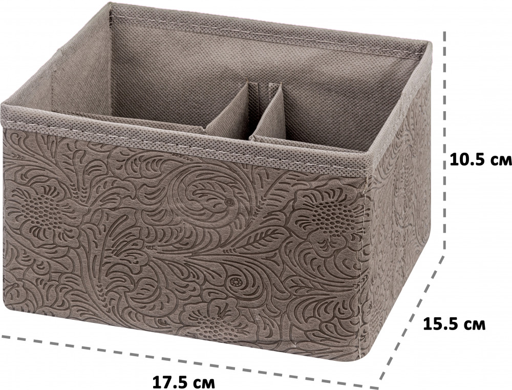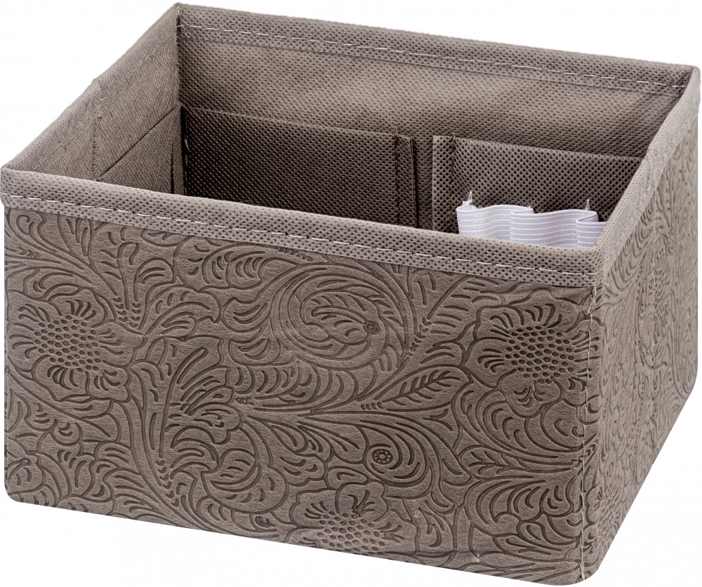 El Casa Органайзер для косметики и мелочейВ данный момент этот товар отсутствует в продаже. Возможно, у нас найдется аналогичный или похожий товар здесь. Серия: Цветочный узор на кофе с молоком Органайзер подойдет для хранения косметики, канцелярии и других мелочей. Органайзер выполнен из высококачественного материала и имеет плотные картонные вставки. Внутри имеет 4 перегородки, которые можно разместить на свое усмотрение. На 2-х перегородках имеется по 3 держателя для туши, кисточек, ручек или карандашей. Внутри органайзера можно сделать от 1-го до 5-ти отделений и до 8-ми карманов по бокам. Органайзер можно сложить. В таком виде он занимает совсем мало места. Складной органайзер сможет стать удобным и эстетичным дополнением вашего дома! |