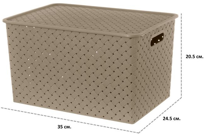 Хорошая корзинка. Брала этой же серии не глубокую в другом магазине. Глубокую нашла только здесь. Меня полностью устраивает. Размер соответствует. Никакого запаха. Крышка сидит нормально.
