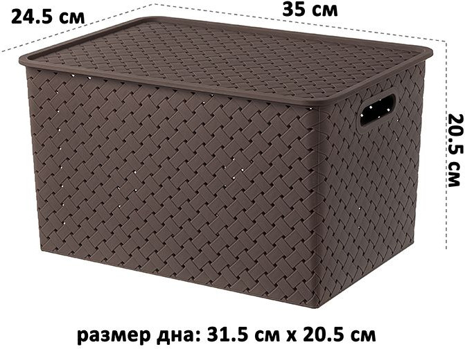 Хорошая корзинка. Брала этой же серии не глубокую в другом магазине. Глубокую нашла только здесь. Меня полностью устраивает. Размер соответствует. Никакого запаха. Крышка сидит нормально.