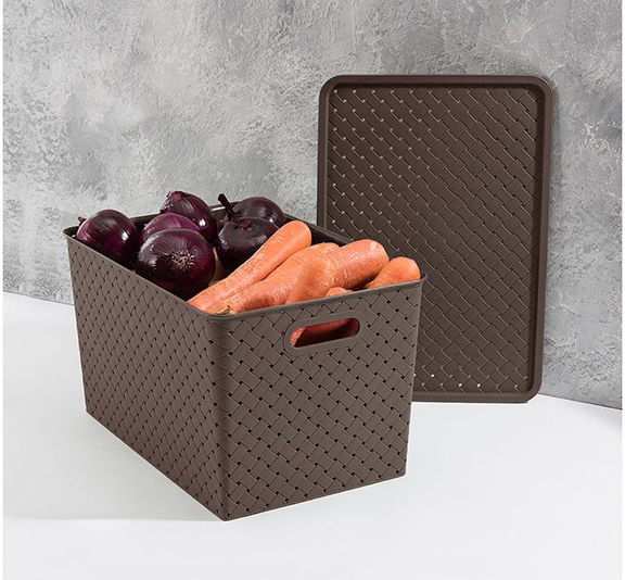 Универсальная корзинка с крышкой подходит для хранения бытовых принадлежностей, косметики, рукоделия, предметов гигиены и других мелочей. Поможет правильно организовать пространство в доме и сэкономить место. Для удобства переноски по бокам корзины предусмотрены специальные отверстия. Естественный цвет и приятная фактура делают корзину эстетически привлекательной и органичной.
