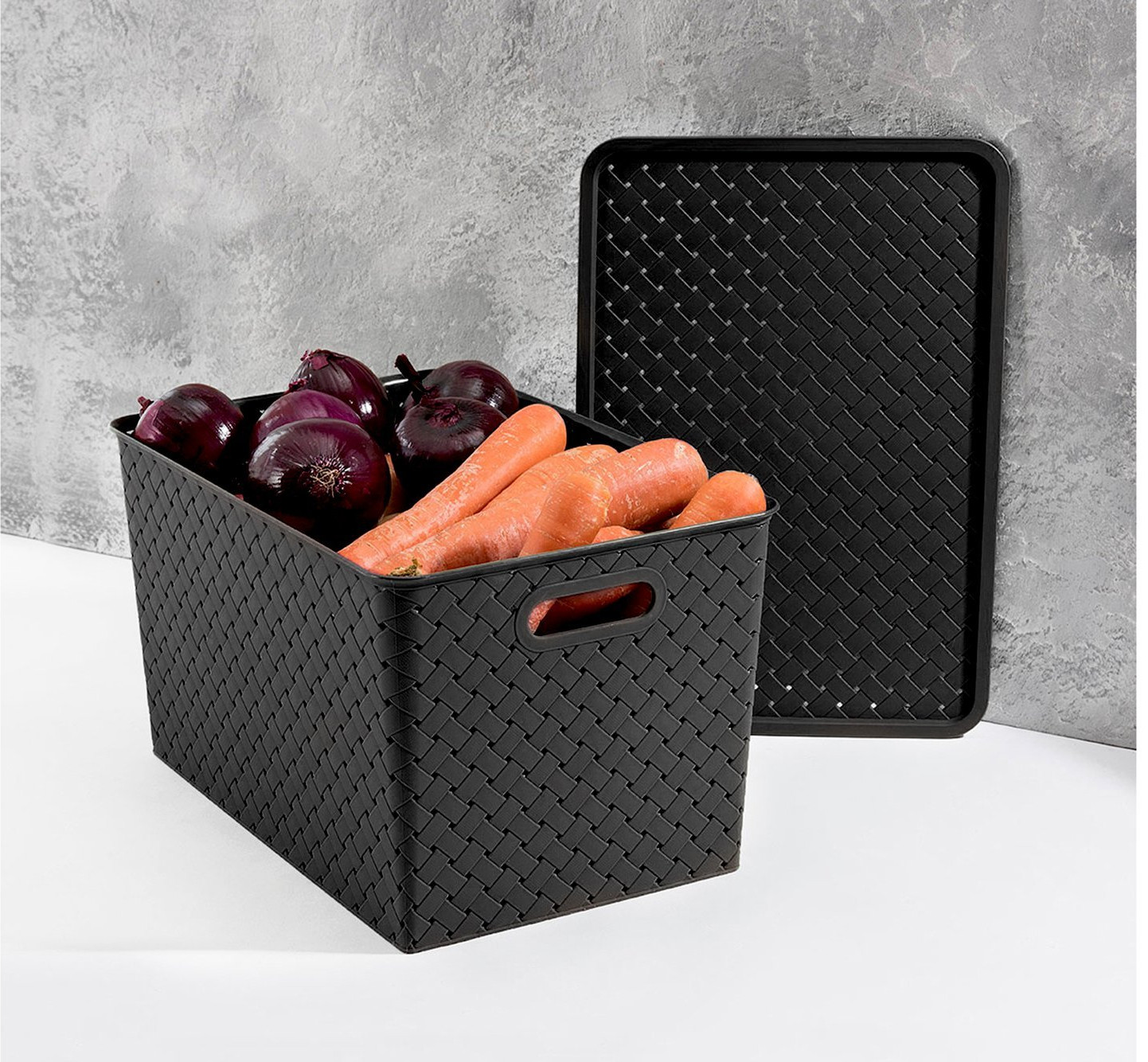 Хорошая корзинка. Брала этой же серии не глубокую в другом магазине. Глубокую нашла только здесь. Меня полностью устраивает. Размер соответствует. Никакого запаха. Крышка сидит нормально.