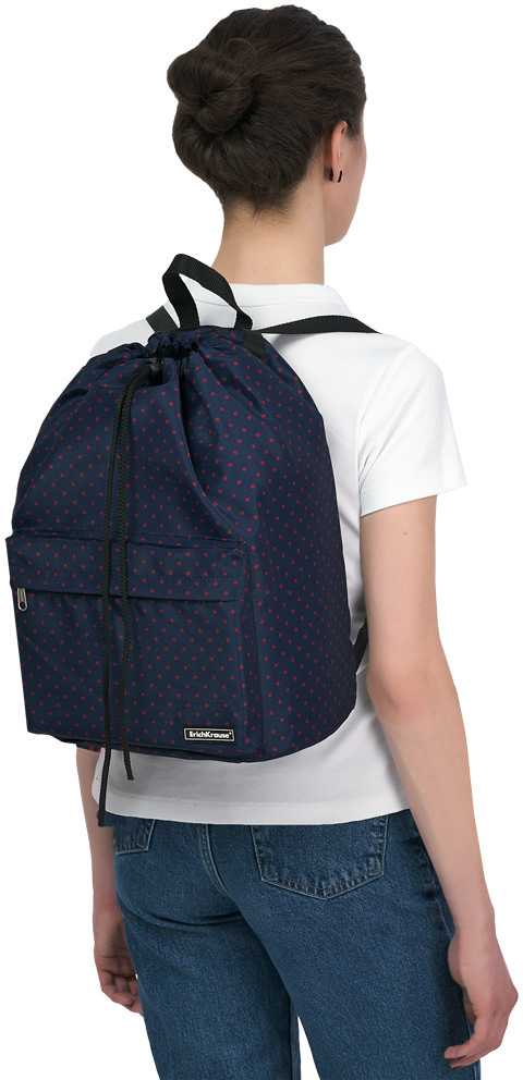 Серия: Dots in Blue Универсальная модель, затягивается на шнурке. Лямки из плотной стропы подходят для максимального использования объема. Места крепления лямок и ручки усилены дополнительными швами. Внутри одно вместительное отделение, снаружи большой передний карман на молнии. Надежная молния с мягким ходом оснащена бегунком с логотипом ErichKrause. |