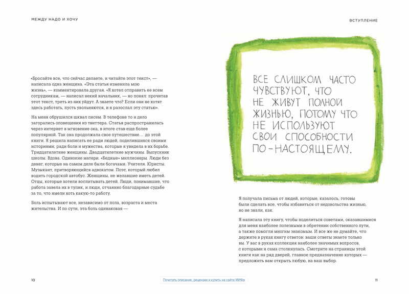 «В жизни есть два пути: надо и хочу. Мы приходим к этому перекрестку снова и снова. И каждый день выбираем. Надо — это мнения других по поводу того, как нам жить. Хочу — это то, кто мы на самом деле, во что верим и что делаем наедине с собой настоящим.».