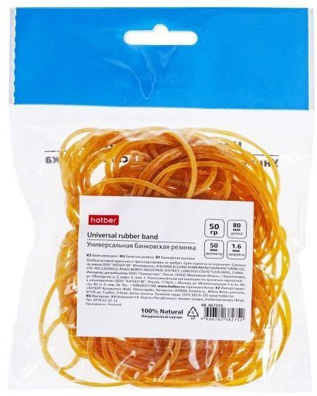 Hatber Резинка банковскаякачество В данный момент этот товар отсутствует в продаже. Возможно, у нас найдется аналогичный или похожий товар здесь. Банковская резинка из 100% натурального каучука. Резинка имеет длину 80мм и диаметр 50 мм. Толщина и ширина резинки — 1,6 мм. Обладает наивысшим коэффициентом растяжения, устойчива к разрывам и имеет более длительный срок службы. Фасуется в пакеты с европодвесом по 50 г. Незаменимый канцелярский предмет, необходимый для использования в офисном помещении, банковском учреждении и в быту. |