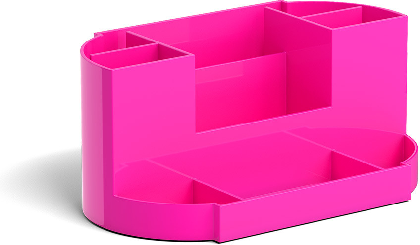 Классная подставка, очень вместительная. Поместились ручки и цветные карандаши. Качественный пластик.