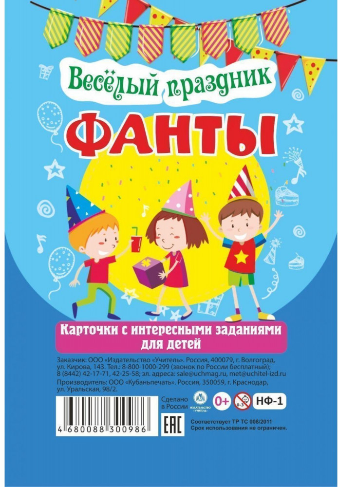 Игра настольная «Фанты. Веселый праздник». Карточки с интересными заданиями для детей+41 яркие карточки гладкие карточки интересные задания размер карточек нет коробки