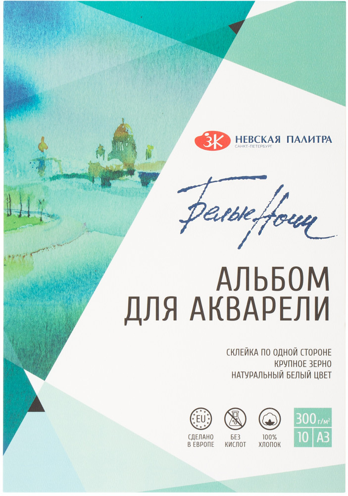 Альбомы-склейки акварельной бумаги «Белые ночи» от известного бренда «Невская палитра» отличаются высочайшим качеством. Идеально подходят для акварели, а также для гуаши и акрила.