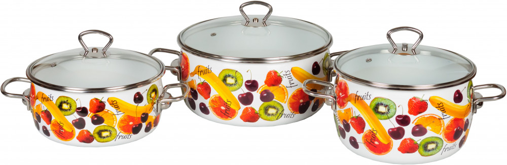 Эмалированная кастрюля надежно укрывает металл стекловидной эмалью, не позволяя ему контактировать с пищей. Этот вид посуды определенно выигрывает у алюминиевого благодаря своему внешнему виду — на кухне такая кастрюля всегда выигрышно смотрится. Эмаль на кастрюле хорошо моется и чистится, посуда долго сохраняет первоначальный вид. В основе эмалированной кастрюли находится чаша из металла или чугуна, которая не деформируется под влиянием огня или спирали электрической плиты. К плюсам эмалированной кастрюли следует отнести тот факт, что в ней можно готовить всевозможные рагу, борщи, щи, солянки, рассольник, кислые компоты — эмаль инертна к кислой среде, и не вступает с ней в реакцию.