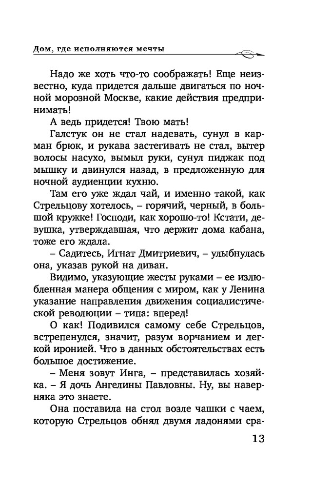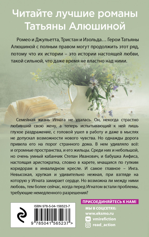 Дом, где исполняются мечтыВ данный момент этот товар отсутствует в продаже. Возможно, у нас найдется аналогичный или похожий товар здесь. Серия: Еще раз про любовь. Романы Т. Алюшиной. Новое оформление (обложка) Семейная жизнь Игната не удалась. Он, некогда страстно любивший свою жену, а теперь испытывающий к ней лишь глухое раздражение, с головой ушел в работу и даже в мыслях не допускал возможности нового чувства. Но однажды дорога привела его на порог странного дома. В нем удивляло все: и огромные пространства и, самое главное, его жильцы. Среди них и небольшой, но очень умный кабанчик Степан Иванович, и бабушка Анфиса, настоящая аристократка, словно в карете, мчащаяся по гулким коридорам в инвалидном кресле. И, самое главное, — Инга. Невысокая, хрупкая и удивительно нежная, при взгляде на которую у Игната замирает сердце. Но возможна ли между ними любовь, тем более сейчас, когда перед Игнатом встали проблемы, требующие немедленного разрешения. |