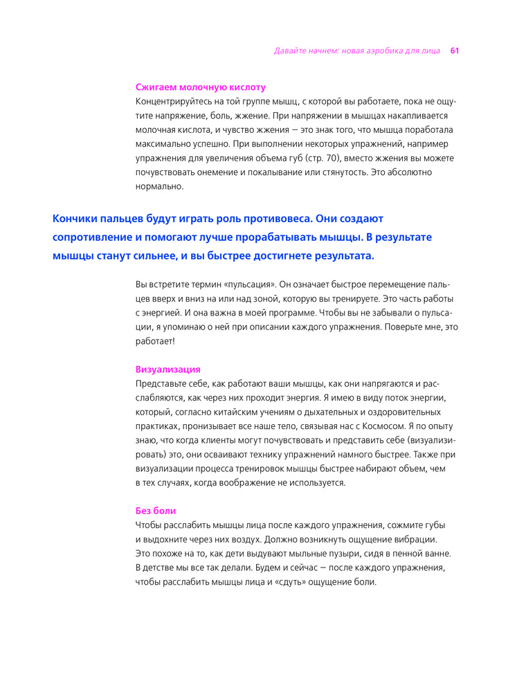 Новая аэробика для кожи и мышц лицаВ данный момент этот товар отсутствует в продаже. Возможно, у нас найдется аналогичный или похожий товар здесь. Серия: Аэробика для лица Автор этой книги — дипломированный специалист по эстетической медицине, автор мирового бестселлера N1 по уходу за лицом «Аэробика для кожи и мышц лица». Разработанный ею 30 лет назад комплекс упражнений невероятно популярен и считается великолепной альтернативой пластической хирургии. Дважды он оказывался в числе 100 лучших средств красоты, а Кэрол Мэджио была названа лучшим мировым авторитетом в области упражнений для мышц лица. Новая программа аэробики для лица, представленная в этой книге, действует еще быстрее и эффективнее. Потратив на упражнения всего лишь по 8 минут два раза в день, вы сможете приподнять тяжелые веки, уголки рта, сократить припухлости под глазами, убрать впадины под ними, укоротить, сузить, выпрямить нос, придать очертанию щек прежнюю четкость, сделать губы более полными, смягчить морщины и укрепить овал лица. Результат будет заметен уже через 6 дней! Вот почему этой аэробикой для лица пользуются |