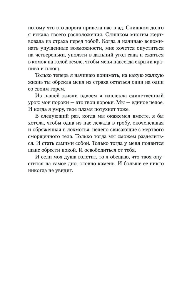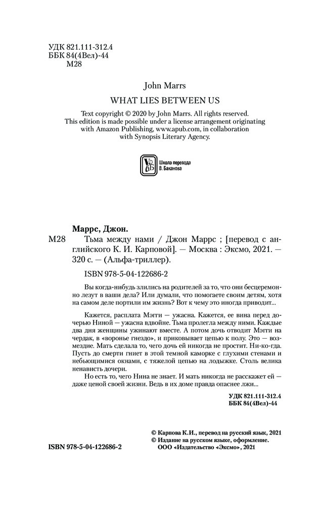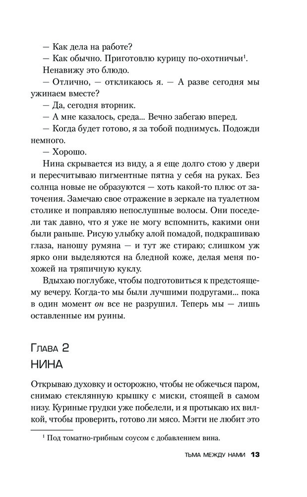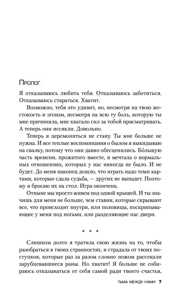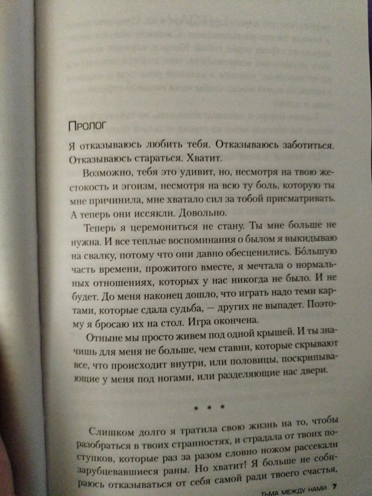 ❗️ Осторожно, могут быть спойлеры❗️ ⠀ У Маррса я читала только «Единственный», который мне понравился своей динамикой и сюжетными поворотами. «Тьма» же не богата на динамику. Это скорее герметичный триллер, рассказывающий о разрушающей силе любви. Сначала я очень разозлилась. Первые 100 страниц было откровенно скучно: одни рассуждения и болтовня. Раздражала Мэгги своим бессилием. Я не понимала, почему она не хочет обратиться к специалистам, попросить помощи, поговорить с дочерью о случившемся. Её разрушающая любовь сломала две жизни. ⠀ Мэгги повернула не туда и совсем не собиралась возвращаться назад к здоровым отношениям. Она еще сильнее погрязла во лжи, когда Нине требовалось больше поддержки и материнской любви. Мать совсем не задумалась о том, какой урон получит её дочь и сможет ли она восстановиться. Хочется обвинить её во всем. Ведь на ней, как на родителе, лежит ответственность за здоровье своего ребёнка. Но тут же возникает вопрос: - А как бы поступила я? И мне трудно на него ответить. В книге много шокирующих и аморальных моментов. Самое страшное то, что такое может произойти в реальной жизни. Вспоминаю себя в 14 лет и понимаю, что это такой трудный и нежный возраст, в котором поддержка родителей очень важна. И любая ложь, скрывающая горькую правду, совсем не поможет в будущем. Отсюда и возникают непонимание и ненависть.