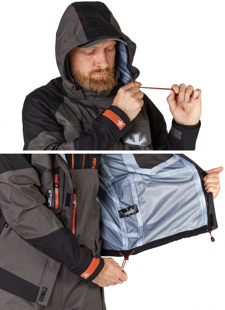 Костюм изготовлен из двухслойного мембранного материала Dermizax японской компании Toray. Современный легкий утеплитель 3M Thinsulate обеспечит комфортное состояние при температуре до 0ᵒС.