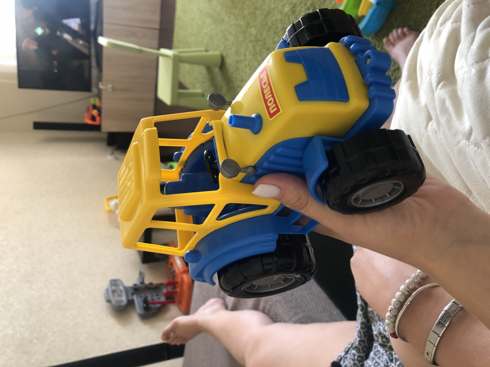 Очень классный трактор. Нам пришёл красный с чёрным. Очень яркий! Как и все машинки фирмы Полесье из хорошего качественного пластмасса. Хорошо бы, чтобы цены на них не повышались