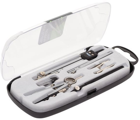 Hatber Набор чертёжных принадлежностейВ данный момент этот товар отсутствует в продаже. Возможно, у нас найдется аналогичный или похожий товар здесь. Металлические части чертежного инструмента ТМ Hatber изготовлены из цинка, надежный соединительный механизм позволяет выдерживать многократные циклические нагрузки. Готовальня упакована в пластиковый пенал с прозрачной крышкой, оснащена европодвесом для расположения на специальных стойках с навесными крючками. Предназначена для учеников старших классов и студентов. Наполнение из семи предметов: циркуль, удлинитель для увеличения радиуса циркуля, рейсфедерная вставка, точечная насадка, рейсфедер, кронциркуль и пенал с запасным грифелем. |