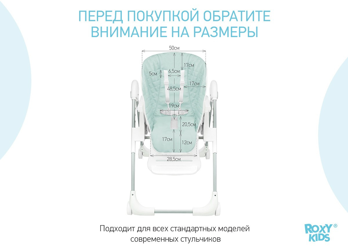 ROXY-KIDS Чехол универсальный для детского стульчикаВ данный момент этот товар отсутствует в продаже. Возможно, у нас найдется аналогичный или похожий товар здесь. Чехол на стульчик для кормления ROXY-KIDS разработан как универсальный сменный аксессуар, который подойдет для большинства моделей современных стульчиков для кормления. Среди фотографий товара представлена подробная схема размеров чехла, по которой мы рекомендуем сравнить чехол перед покупкой с размерами вашего стульчика для обеспечения наилучшей эффективности. Чехол повторяет форму сиденья, легко надевается и снимается. Специальные прорези для ремней позволят вам позаботиться о комфорте и безопасности малыша. Этот аксессуар сделан из высококачественной искусственной кожи, которая не впитывает запахи и обладает водоотталкивающими свойствами. Чехол прост в уходе, потому что его можно очистить от загрязнений при помощи стиральной машины в деликатном режиме. В ассортименте ROXY-KIDS чехлы на стульчик для кормления представлены в нескольких цветах. |