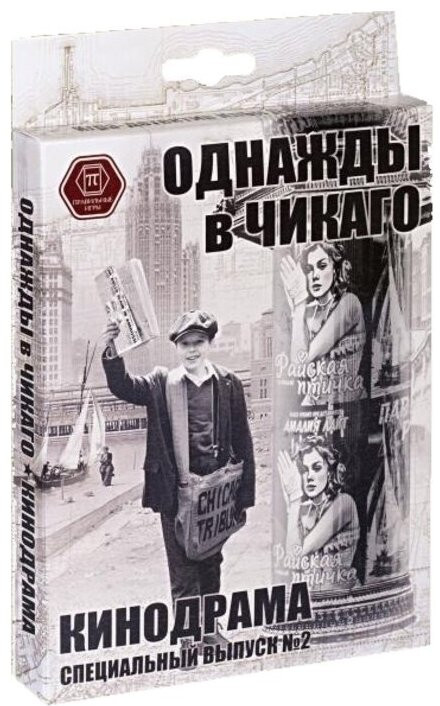 Правильные Игры Игра настольная «Однажды в Чикаго. Кинодрама» дополнениеВ данный момент этот товар отсутствует в продаже. Возможно, у нас найдется аналогичный или похожий товар здесь. «Кинодрама» — второе дополнение к настольной игре «Однажды в Чикаго» с новым делом. На сей раз репортеру Джону Фитпатрику предстоит разобраться в загадочной смерти крупного промышленника-миллионера, чье дело было найдено в машине, оставленной в центре города. В ходе расследования выясняется, что его красавица жена, которая является знаменитой киноактрисой куда-то пропала. |