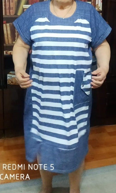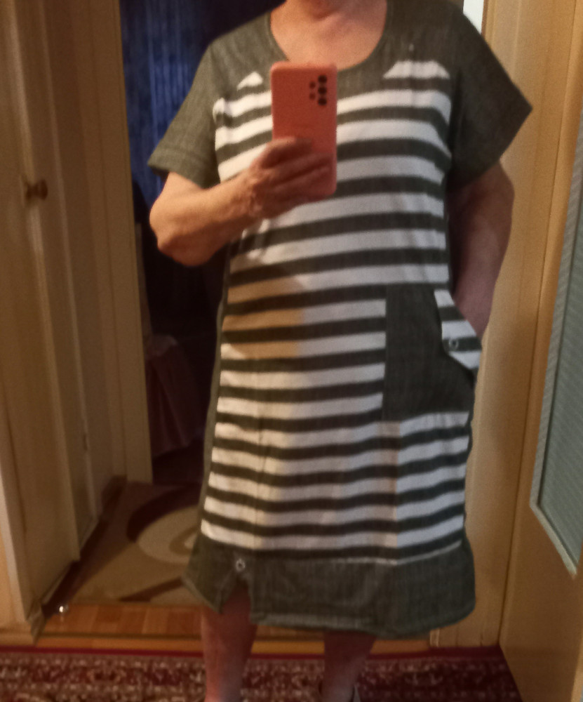 Отличное тоненькое платье на лето само то, взяли 58 большевато, можно было 56 размер взять,а может мама и похудела раньше 54-56 носила.