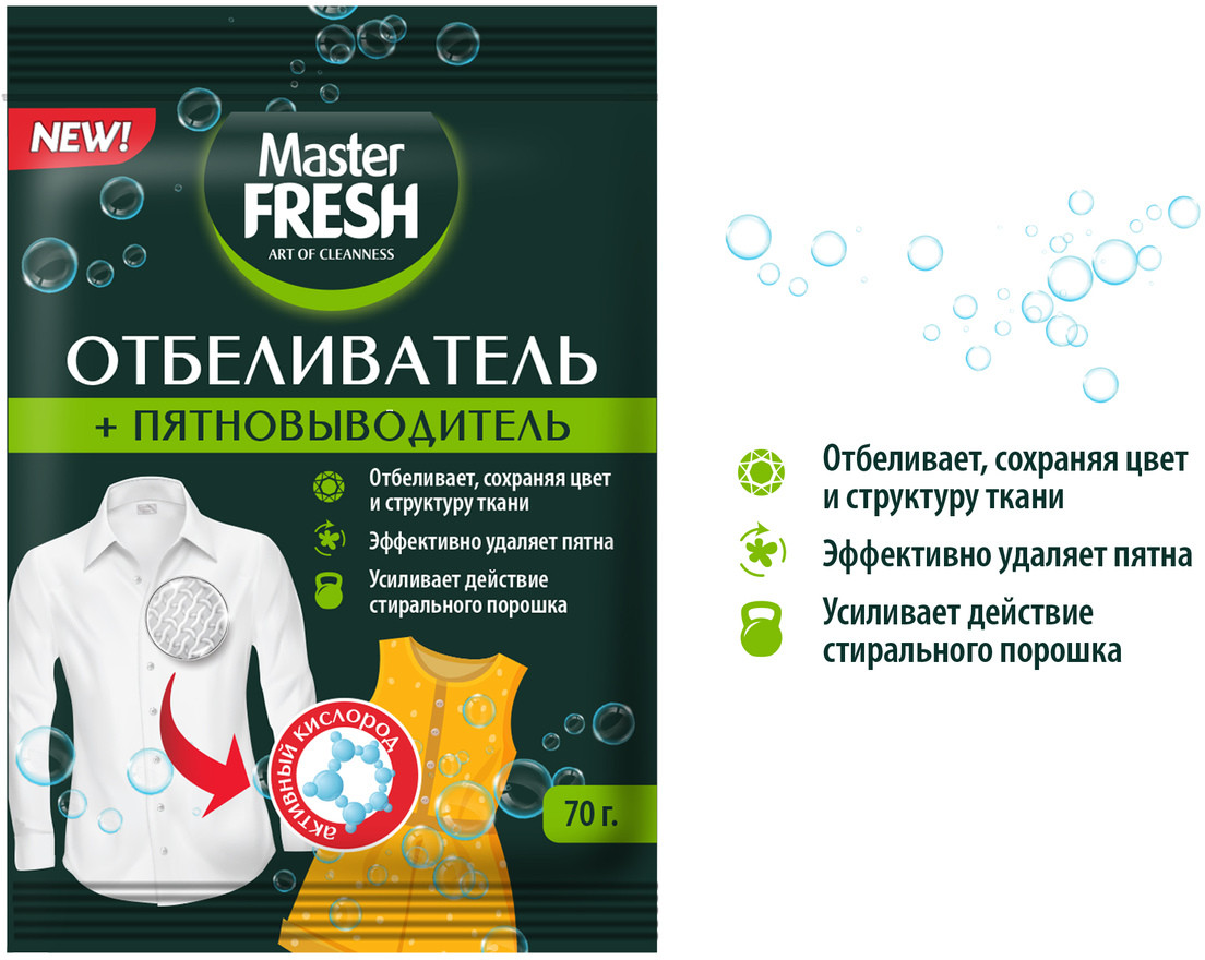 Master Fresh Отбеливатель пятновыводитель кислородный «Master Fresh»-25% +6 хорошее отбеливание для белого белья при замачивании не выводит пятна