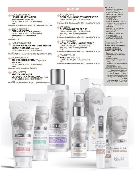💳 Оплатить за товар можно при получении 🇰🇿 Есть бесплатная доставка по Казахстану от 1 дня 🎁 Копите бонусы с каждой покупки Серия: K-W.H.I.T.E 3:0 Деликатное средство глубоко очищает кожу и придает ей гладкость и шелковистость, возвращает свежий, здоровый и сияющий вид. Оказывает направленное воздействие на ключевые этапы меланогенеза, решая проблему нарушения пигментации кожи, и позволяет получить видимый отбеливающий эффект уже через 10 дней. |