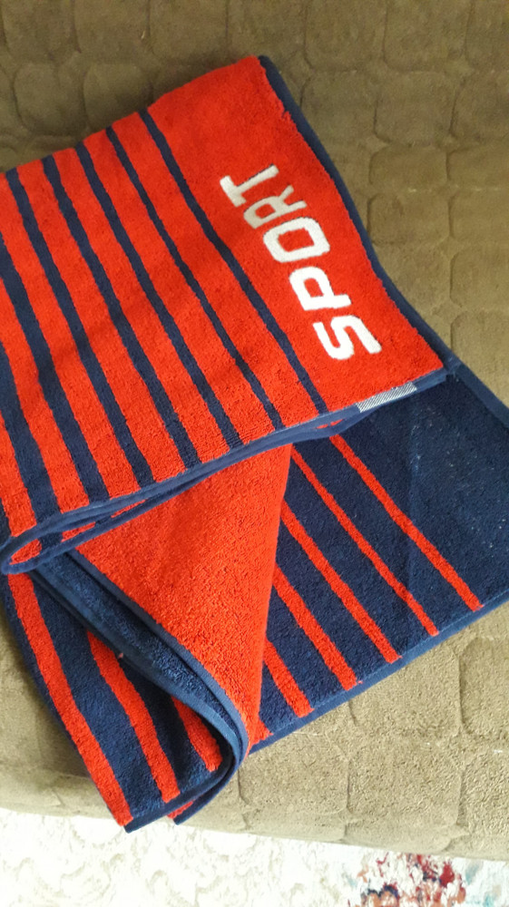 Полотенце хорошее.Отлично как для рук так и для тренировок,так как средней плотности и не занимает много места,соответственно быстро сохнет.Не линяет.