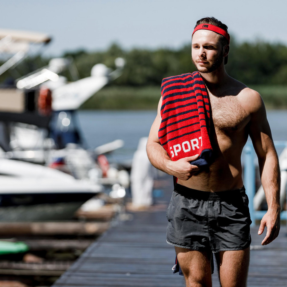 Полотенце хорошее.Отлично как для рук так и для тренировок,так как средней плотности и не занимает много места,соответственно быстро сохнет.Не линяет.