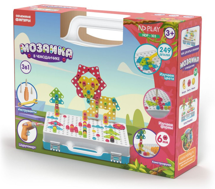ND Play Конструктор «Мозаика в чемоданчике. Объемные фигуры»-25%