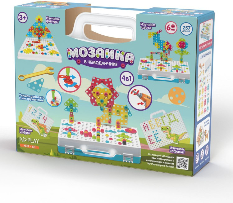 💳 Оплатить за товар можно при получении 🇰🇿 Есть бесплатная доставка по Казахстану от 1 дня 🎁 Копите бонусы с каждой покупки Развивающий детский конструктор 3D с дрелью 2-х режимов (+3 насадки) и 249 ярких деталей с болтами в чемодане + 8 карточек с животными! Новинка. Новые детали, крупная мозаика. На рабочую поверхность закрепляем карточки и ребенок уже может легко раскрашивать картинки мозаикой разного цвета и размера или вкручивать болтики и детали. |