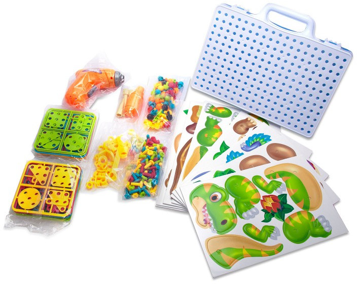 💳 Оплатить за товар можно при получении 🇰🇿 Есть бесплатная доставка по Казахстану от 1 дня 🎁 Копите бонусы с каждой покупки Развивающий детский конструктор 3D с дрелью 2-х режимов (+3 насадки) и 249 ярких деталей с болтами в чемодане + 8 карточек с доисторическими животными! Новинка. Новые детали, крупная мозаика. На рабочую поверхность закрепляем карточки и ребенок уже может легко раскрашивать картинки мозаикой разного цвета и размера или вкручивать болтики и детали. |