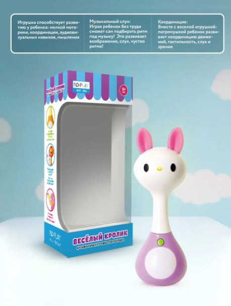 ND Play Игрушка музыкальная «Веселый Кролик»В данный момент этот товар отсутствует в продаже. Возможно, у нас найдется аналогичный или похожий товар здесь. Меня зовут Веселый Кролик, и я незаменимый помощник для мамы и лучший друг для малыша. Со мной можно не только играть. Я могу проигрывать различные мелодии и светиться в такт с музыкой. А ещё я знаю разные звуки окружающего мира. Если меня потрясти, я буду издавать различные звуки и светиться от радости. У меня волшебные ушки, сделанные из мягкого и безопасного силикона, которые можно грызть. |