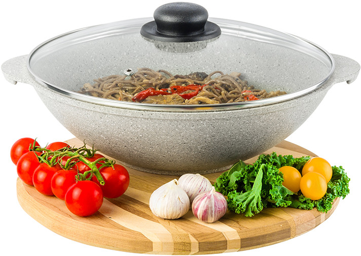 Elan Gallery Сковорода-вок с крышкой «Серый агат»