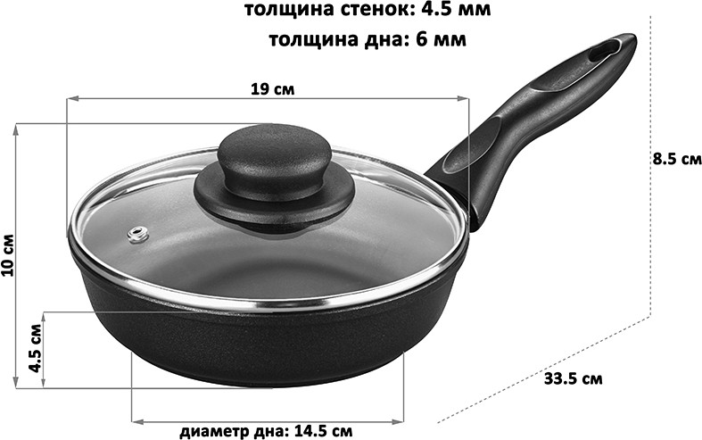 Хорошая сковорода,толстая. Небольшой размер,как раз для зажарки либо же на пару яиц,или 4 средних сырника. Не пригарает пока что. Тяжеленькая. Мне понравилась.