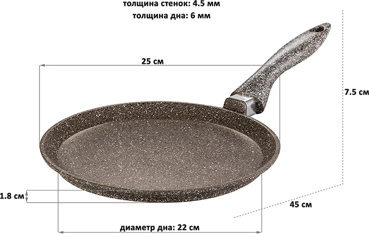 💳 Оплатить за товар можно при получении 🇰🇿 Есть бесплатная доставка по Казахстану от 1 дня 🎁 Копите бонусы с каждой покупки Серия: Гармония вкуса Сковорода блинная диаметром 24 см «Гармония вкуса» изготовлена из литого алюминия в России и имеет ультрапрочное двухслойное антипригарное покрытие. Главное преимущество покрытия — устойчивость к царапинам и износу. Покрытие безопасно для человека и не содержит PFOA или других вредных веществ. |