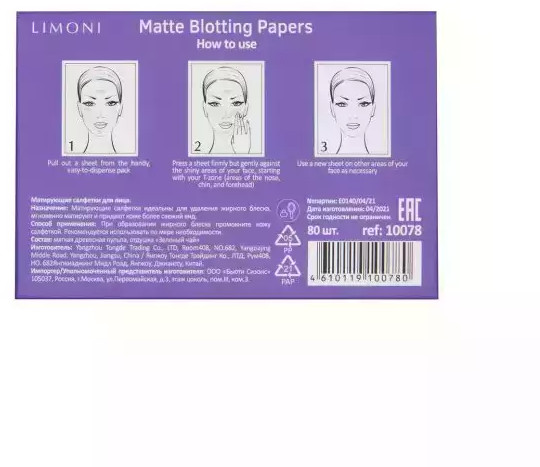 Limoni Салфетки матирующие для лица лиловые