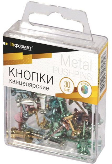 Informat Кнопки силовыеВ данный момент этот товар отсутствует в продаже. Возможно, у нас найдется аналогичный или похожий товар здесь. Кнопки канцелярские. Применяются для крепления листов с информацией к офисным пробковым доскам и другим поверхностям. Кнопки отличаются повышенной прочностью. |
