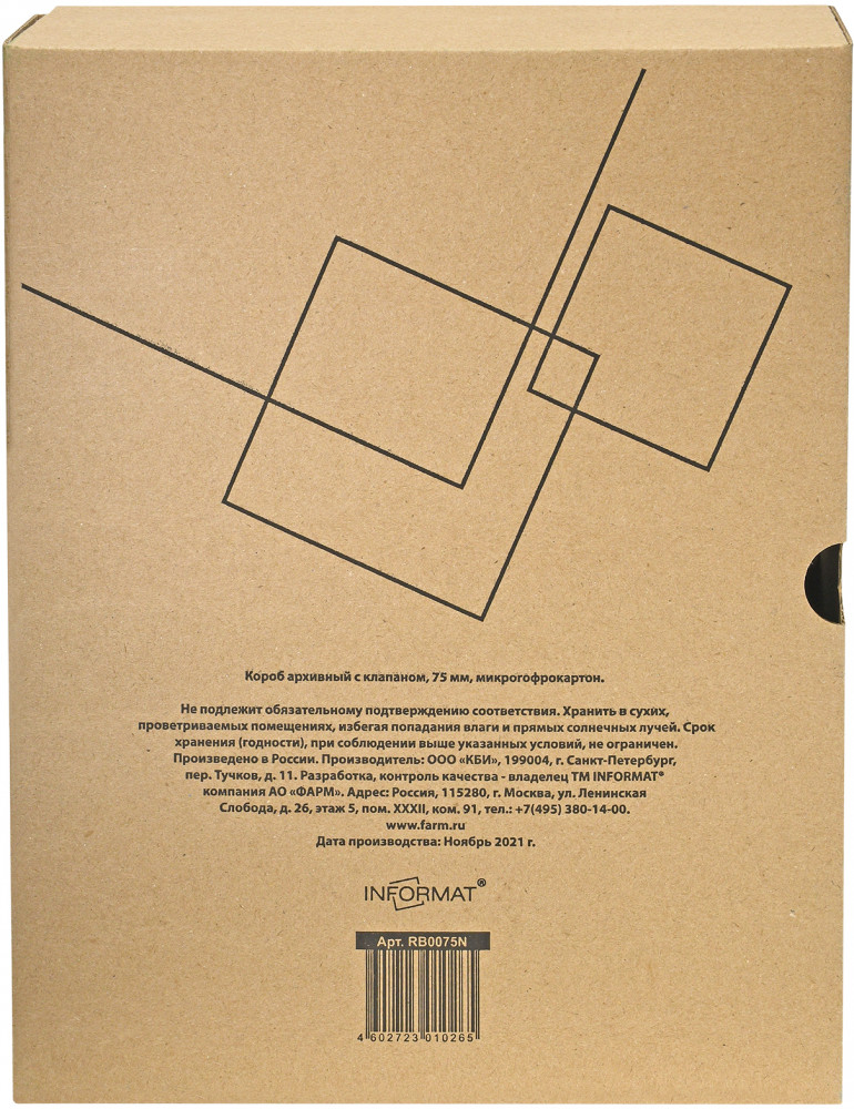 Informat Короб архивныйВ данный момент этот товар отсутствует в продаже. Возможно, у нас найдется аналогичный или похожий товар здесь. Разборная тара из плотного картона предназначена для хранения документов формата А4 и папок с ними. Ее удобно размещать на стеллажах. Доступ к бумагам обеспечивает открывающееся отверстие сбоку. |