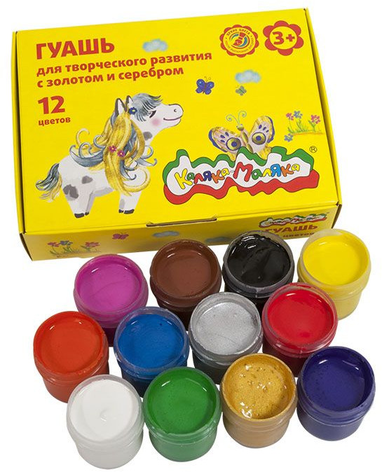 Гуашь предназначена для детского творчества. Отлично подходит в качестве первого материала для обучения рисованию. Имеет оптимальное цветовое сочетание, обладает хорошей насыщенностью и чистотой тона. Отличается прекрасной кроющей способностью. При необходимости разбавляется водой.