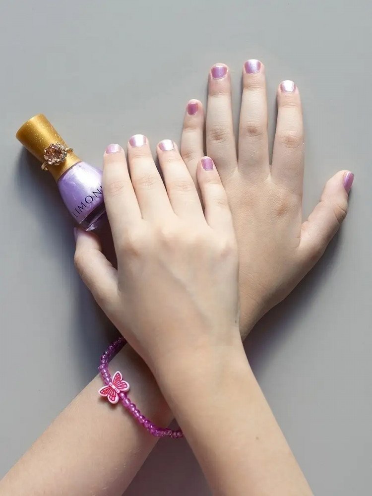 Лак понравился. Смывается при мытье рук. Цвет очень нежный, с блеском. Запах есть, но не противный и не пахнет обычным лаком. Дочь счастлива)