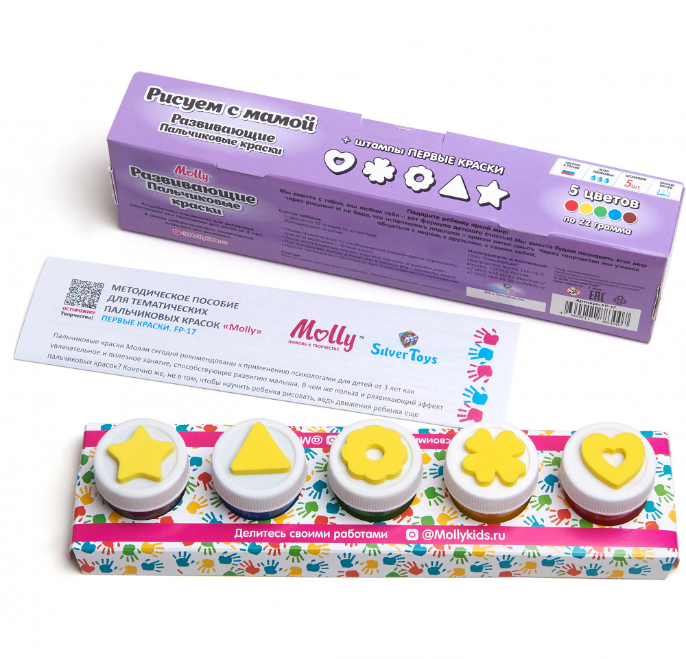 Molly Краски пальчиковые со штампиками «Первые краски»В данный момент этот товар отсутствует в продаже. Возможно, у нас найдется аналогичный или похожий товар здесь. Серия: Рисуем с мамой Пальчиковые краски со штампиками отлично подходят для детского творчества, поскольку позволяют начать осваивать рисование малышам от года, развивают мелкую моторику рук. Преимущество красок в том, что они легко смываются с рук теплой водой с мылом, безопасны, не растекаются и быстро сохнут. |