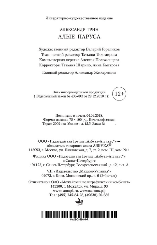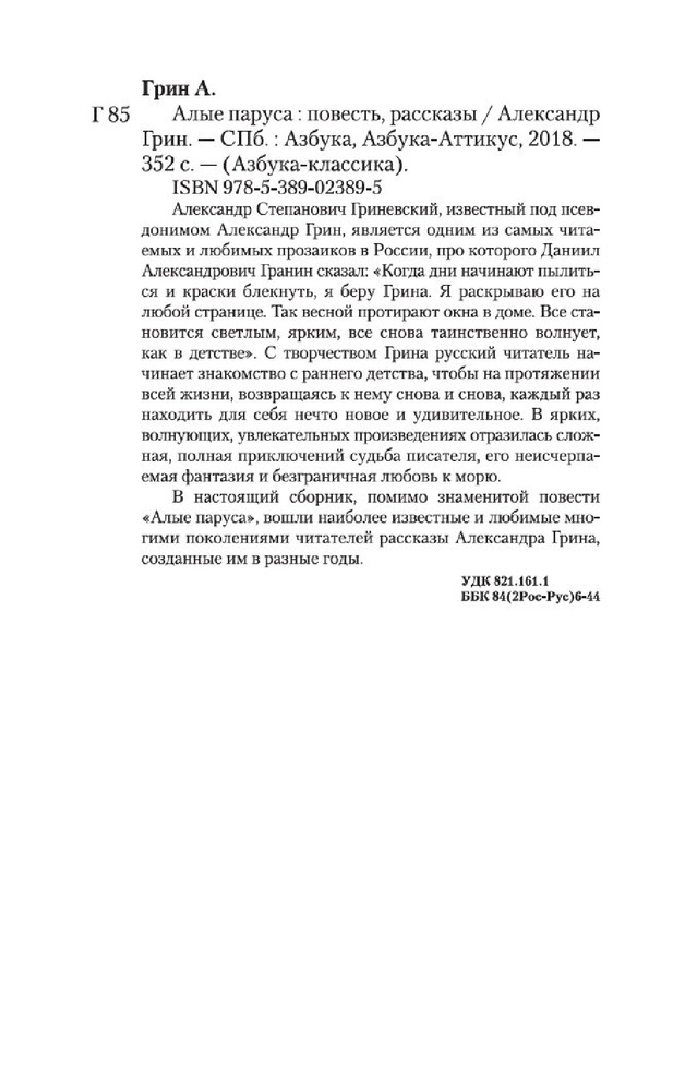 💳 Оплатить за товар можно при получении 🇰🇿 Есть бесплатная доставка по Казахстану от 1 дня 🎁 Копите бонусы с каждой покупки Серия: Азбука-классика (pocket-book) Александр Степанович Гриневский, известный под псевдонимом Александр Грин, является одним из самых читаемых и любимых прозаиков в России, про которого Даниил Александрович Гранин сказал: «Когда дни начинают пылиться и краски блекнуть, я беру Грина. Я раскрываю его на любой странице. Так весной протирают окна в доме. Все становится светлым, ярким, все снова таинственно волнует, как в детстве». С творчеством Грина русский читатель начинает знакомство с раннего детства, чтобы на протяжении всей жизни, возвращаясь к нему снова и снова, каждый раз находить для себя нечто новое и удивительное. В ярких, волнующих, увлекательных произведениях отразилась сложная, полная приключений судьба писателя, его неисчерпаемая фантазия и безграничная любовь к морю. |