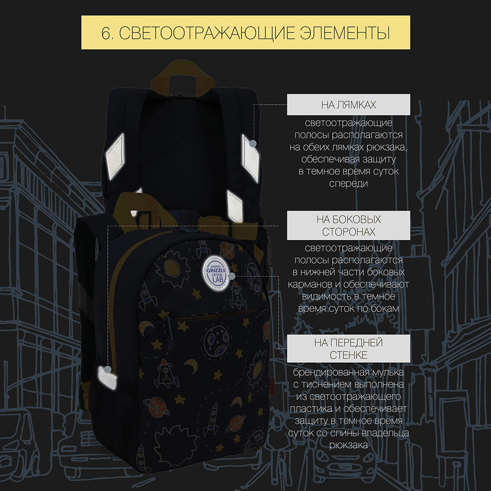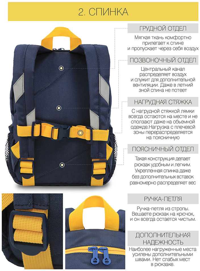 Grizzly Рюкзак детскийВ данный момент этот товар отсутствует в продаже. Возможно, у нас найдется аналогичный или похожий товар здесь. Стильный, легкий и практичный рюкзак «Grizzly» станет незаменимым аксессуаром для ребенка. С ним очень удобно ходить в садик или на развивающие кружки, ездить в гости или просто брать его на прогулку. В рюкзак поместиться все необходимое: и блокнот, и игрушка, и контейнер с едой. А специальный карман из сетки с резиночкой не даст рассыпаться карандашам и фломастерам или сломаться хрупким предметам. Впереди есть кармашек на молнии для разных мелочей, а в боковые карманы можно поместить бутылочку с водой. Имея такой аксессуар, ребенок быстрее приучится к порядку и ответственности за свои вещи. Мягкая спинка и регулируемые лямки делают рюкзачок очень комфортным, а светоотражающие элементы со всех сторон обеспечивают дополнительную безопасность в условиях недостаточной видимости. Материал с водо- и грязеотталкивающей пропиткой. Есть ручка для переноски. Рюкзак можно стирать в стиральной машине. |